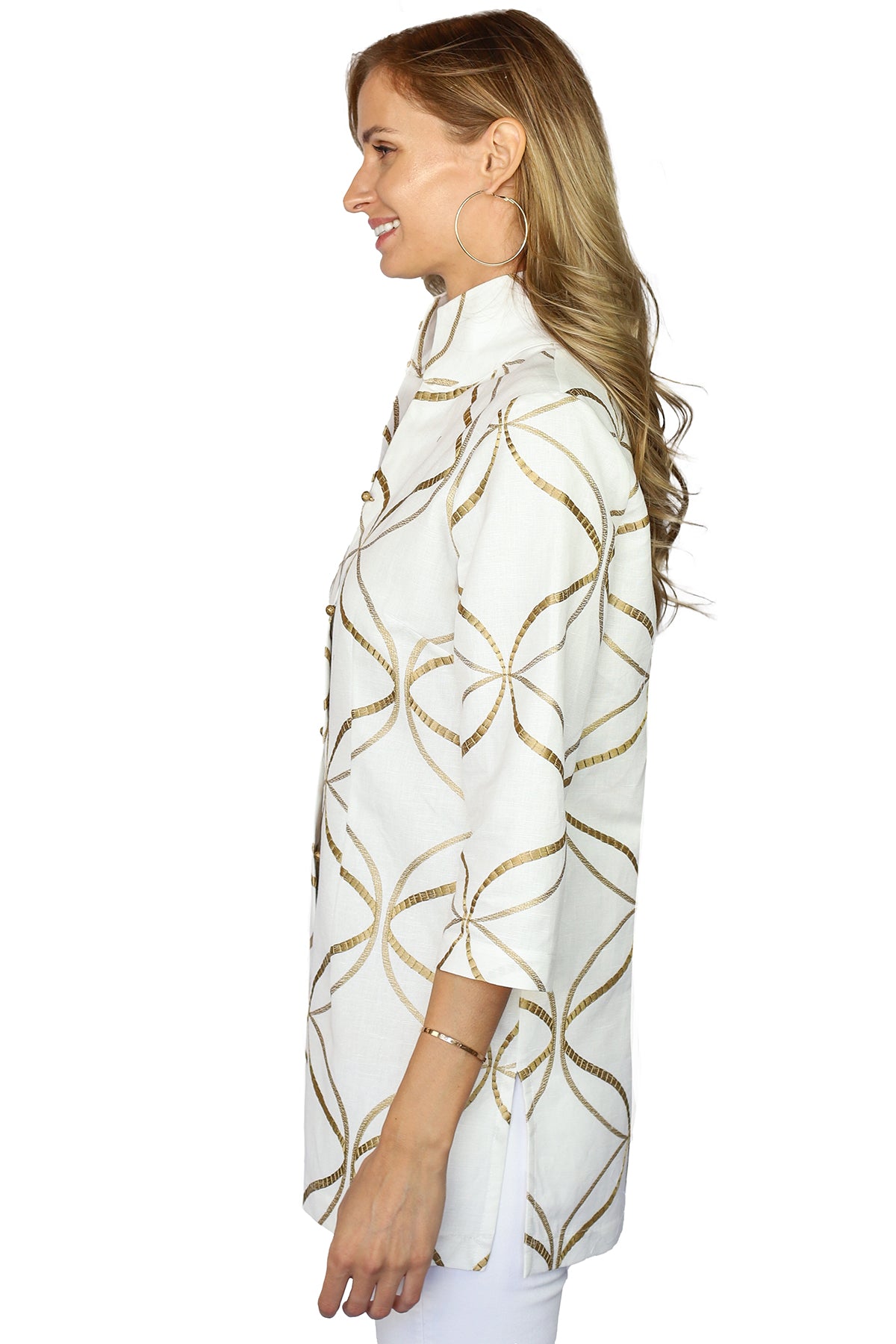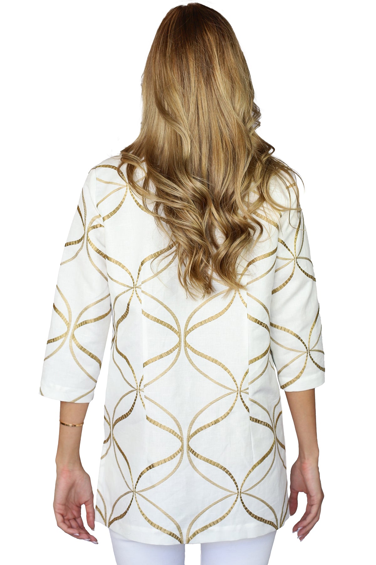Our Signature Rita Silhouette Now Available in Our Beautiful Gold Embroidered Linen!
