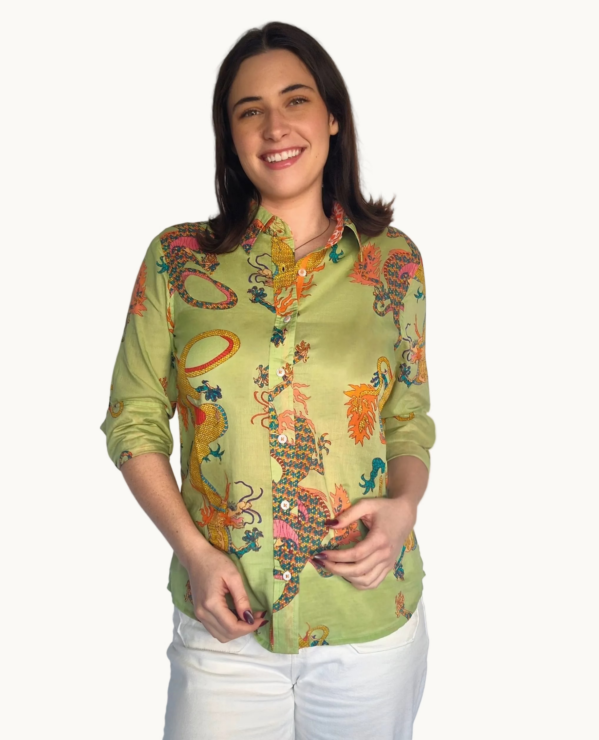 One of our boutiques best sellers, the sage green top is made from 100% Cotton & Linen, beautifully decorated with dancing dragons embodying elements of strength and prosperity. With a perfect balance of style and comfort, this top will boost your confidence falling on the body like a flawless frame for a painted master piece! Both people and Fashion are an art form like no other, so treat yourself like the jewel you truly are!